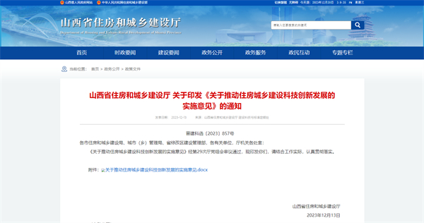 山西省住房和城鄉(xiāng)建設(shè)廳 關(guān)于印發(fā)《關(guān)于推動(dòng)住房城鄉(xiāng)建設(shè)科技創(chuàng)新發(fā)展的實(shí)施意見》的通知。
